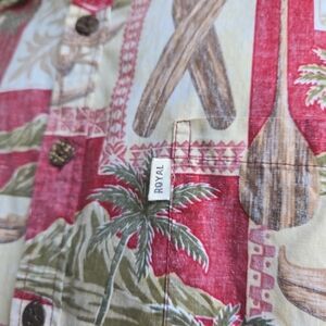 Royal Hawaiian Creations (RHC) has been manufacturing Hawaiian wear since 1987. The proud traditions and heritage of Hawaii are reflected in the prints, colors and styles of Royal Hawaiian Creations. The RHC range is represented here with the 100% premium cotton ‘Paradise Bay’ label shirt. Outrigger reverse print design, front placket with top button, rear box pleat and hem splits.