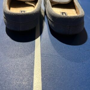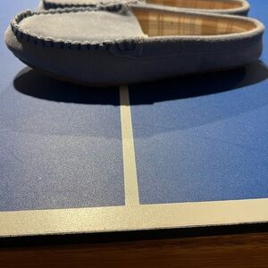 Lands End Blue Suede Moccasin Mule Slippers Flannel Size 7 Comfort House Shoes