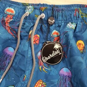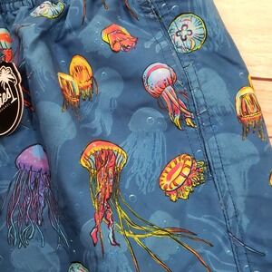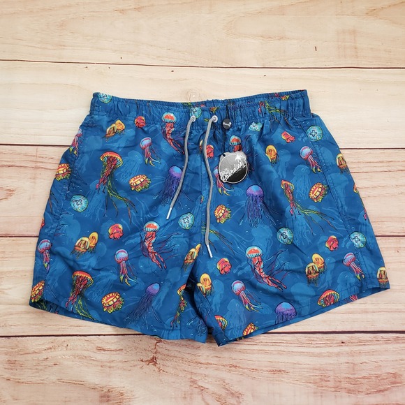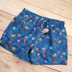 Keywords: mens swim trunks, board shorts, jellyfish print, blue swimwear, Boardies Apparel, medium swim trunks, drawstring shorts, beach wear, summer fashion, swim shorts, mens clothing, vacation apparel, poolside attire, tropical print, swimwear