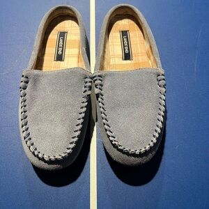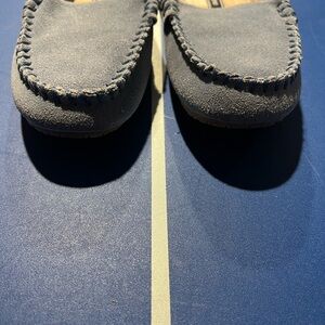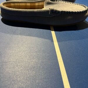 Lands End Blue Suede Moccasin Mule Slippers Flannel Size 7 Comfort House Shoes
