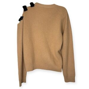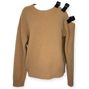 Altuzarra 'Ness' Wool-Cashmere Sweater. Crewneck. Black leather trim at the shoulder with buckles. Condition: Great. Light pilling. Length 24", bust 42".