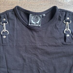 Features bold buckle accents on shoulders. In excellent condition, barely worn. Can fit a women’s medium or large as well.