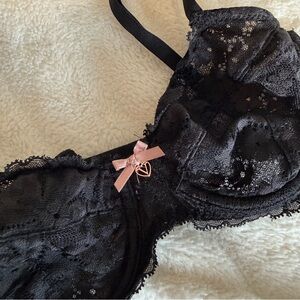 Black lace bralette with underwire, unpadded | size 30D may also fit 32C or 28DD (listed as 32C since there is no option for 30D) | worn and washed once
