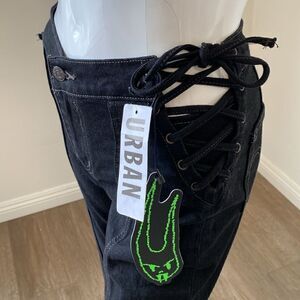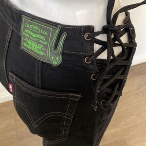 Euphoria actress Barbie Ferreira’s collab with Levi’s Denim. Cut high-rise with a leg that widens into a flare below the knee. Complete with lace-up detailing at each side.