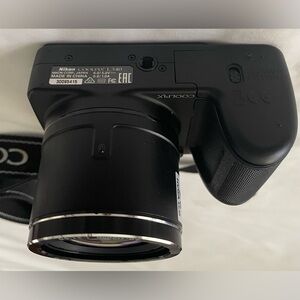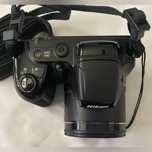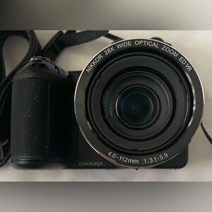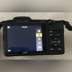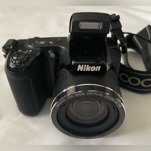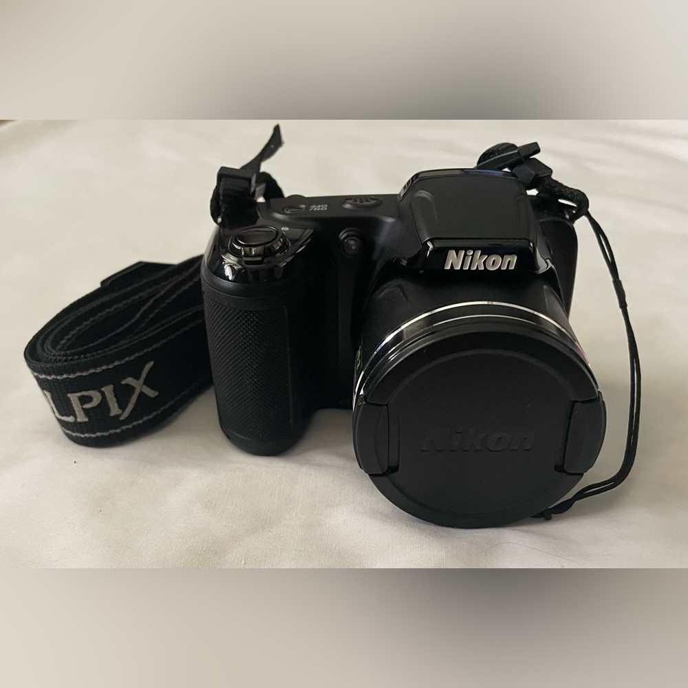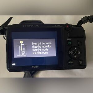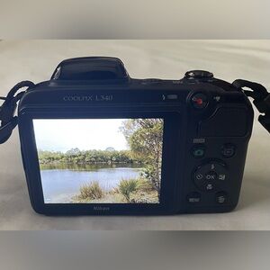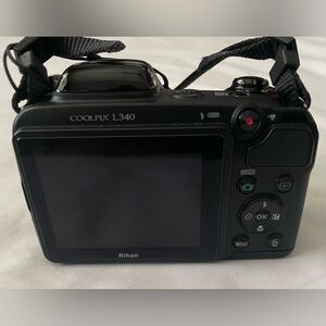The Nikon Coolpix L340 features a powerful 28x optical zoom lens (equivalent) and 720p HD video capability. It is designed for beginners, offering easy-to-use controls, 16 scene modes, and effective vibration reduction (VR) for steady, long-distance shots.