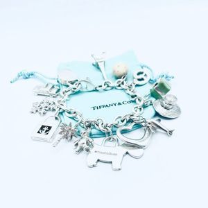 Gorgeous preloved condition and careful curated Vintage Tiffany & Co. Multi Charm Bracelet! Includes rare pieces that have been discontinued. Brilliantly buffed and polished before shipping! Arrives in Tiffany packaging (box, pouch, card card, bag & ribbon).