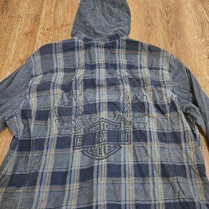 Color: Blue/Gray Plaid with Heather Gray Sleeves & Hood