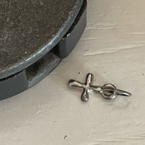 NOT FOR SALE Vintage 1960s sterling silver cross charm pendant with jump hoop #2