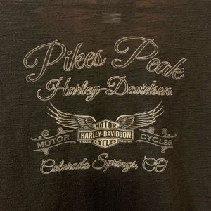 Pikes Peak Harley-Davidson Colorado Springs, CO. Scoop-neck black shirt sleeve tee, size medium