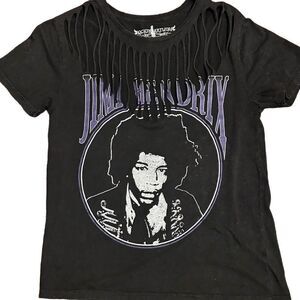 Rockin Artwork Women’s Medium Rare Jimi Hendrix Shredded Graphic T Shirt Black