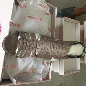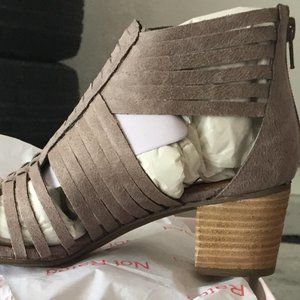 Beautiful chunky, not-so-high-heeled shoes, the lovely gray Taupe color, with a zipper on the heel. new in their boxes.