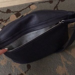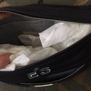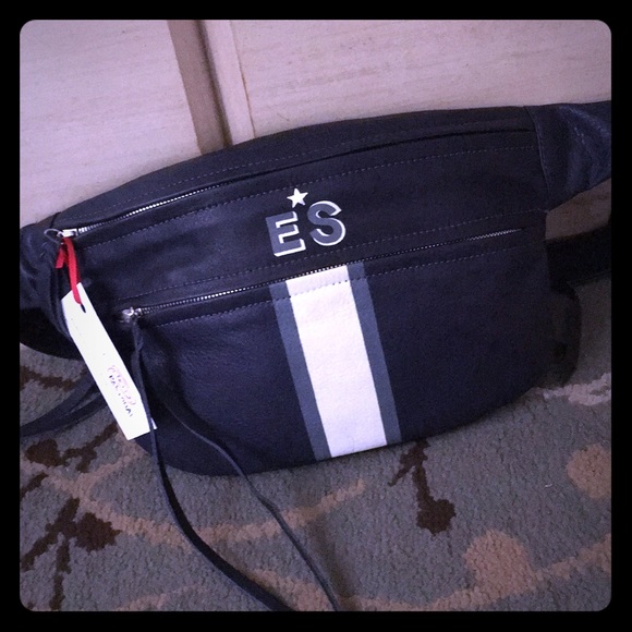 Brand new with tags. Beautiful blue leather fanny pack with 3 compartments! Adjustable strap. Customized with initials ES
