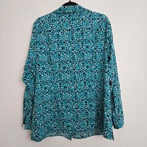 NOTATIONS 1X Teal Button Down Long Sleeve Top Quirky Print Career Casual