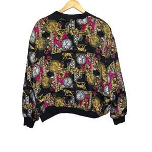 NOTATIONS BOMBER JACKET satin Vintage 80s Ornate Baroque Print