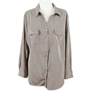 NOTATIONS BROWN AND TAN PINSTRIPE BUTTON UP SHIRT, SIZE 2X