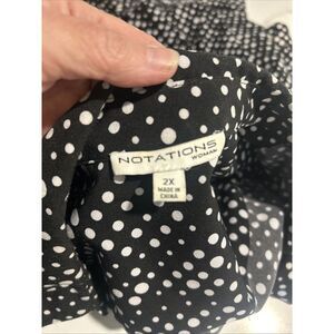 NOTATIONS Blouse Womens 2X Top Polka Dot Long Sleeve Black White. Condition is Pre-owned. Shipped with USPS Ground Advantage.