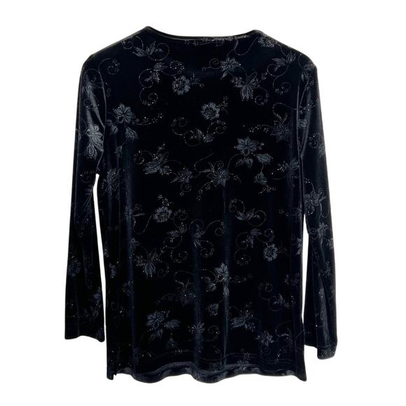 NOTATIONS CLOTHING CO. BLACK SPARKLY FLORAL LONG SLEEVE BLOUSE WOMEN SIZE MEDIUM