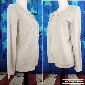 NOTATIONS Silver Metallic Pullover Sweater Blouse - Women's PM