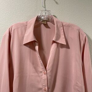 NOTATIONS V-Neck Button Down Dress Blouse, Pink - 1X