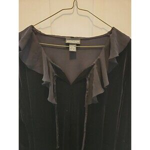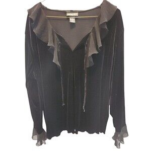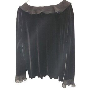 NOTATIONS XL BLACK VELVET RUFFLED NECK BLOUSE