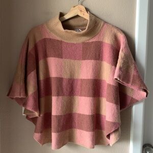 Description: Note di Anita Merino Wool Made in Italy Plaid Cropped Mock Turtleneck Poncho