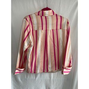 NOTES DU NORD Women's Liv Striped Blouse Sz 40 Wrap Collar Pink/White