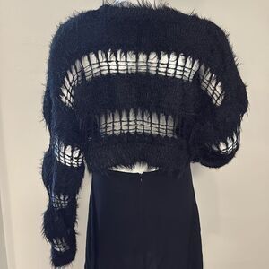 Worn once for a couple of hours. I cut the side tag off because it was sticking out of one of the cutouts. Measures approx 13.5” long. 96% nylon, 4% acrylic.