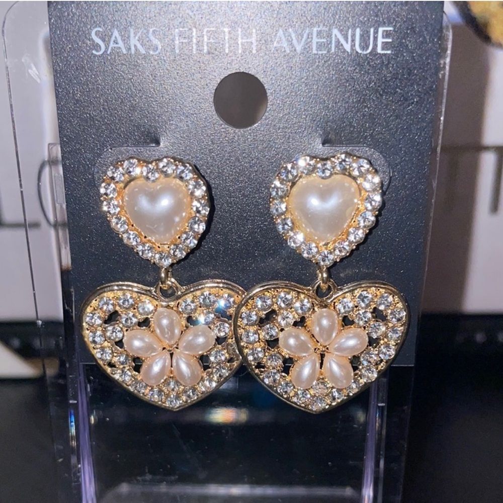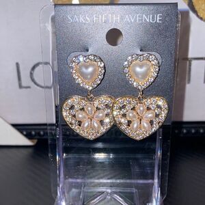 These exquisite earrings from Saks Fifth Avenue showcase a captivating heart design in a luxurious blend of gold and silver tones. Adorned with sparkling crystals, they offer a touch of elegance and glamour, perfect for any occasion. The intricate detailing and polished finish make them a standout accessory in any jewelry collection.
