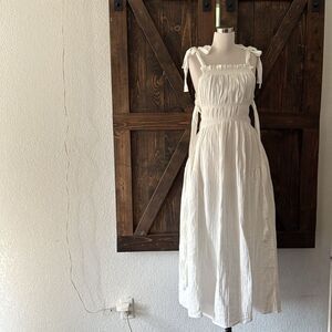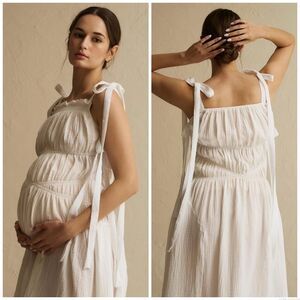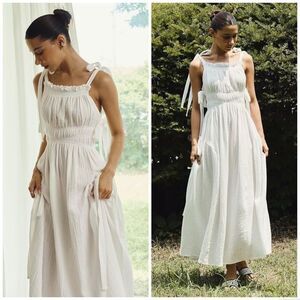 Nwt, This elegant white sleeveless dress is perfect for any occasion. Its flowing design offers both comfort and style. Ideal for warm weather, this dress is a must-have addition to your wardrobe. Soft bio-washed double-face maxi gauze dress. Unlined.