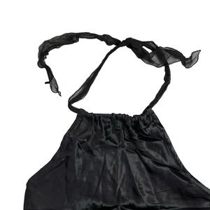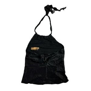 NOTICE Vintage Black Silk Halter Tie Back Top Blouse Y2K Medium