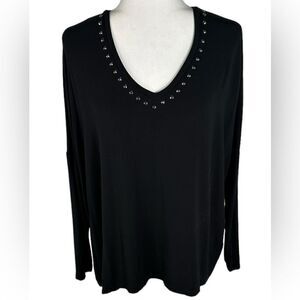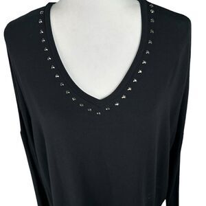 NOTSHY Cashmere Black V Neck Studded Dolman Sleeve Casual Long Sleeve Top