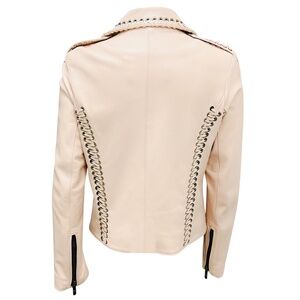 Nour Hammour Blush Pink Lambskin Leather Moto Jacket