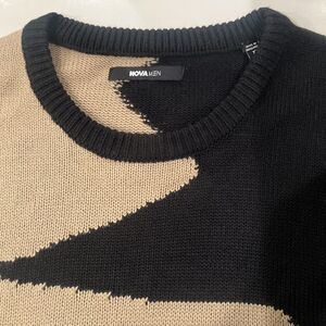NOVA MEN Abstract Two-tone Mens Long Sleeve Gold And Black Crew Neck Sweater XL