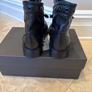 Beautiful all leather Black pull on combat boots with medallion detail . These boots are gorgeous ! Never worn size 37 1/2. Made