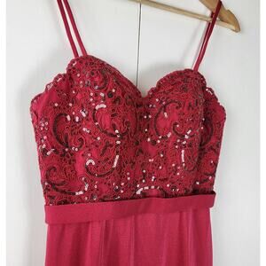 NOX Anabel Sweetheart Sequin Prom Homecoming Maxi Dress Lace Floral Train | S