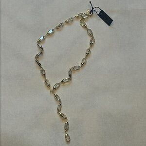Brass in 18kt gold plated lariat style statement necklace with geo shape clear cz stones.