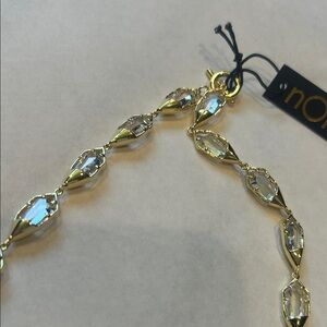 This stunning necklace features a blend of gold and silver tones, perfect for adding a touch of elegance to any outfit.