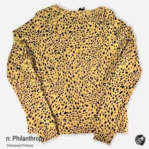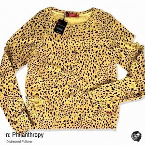 N:PHILANTHROPY BLACKBIRD DISTRESSED SWEATSHIRT IN SPACE CHEETAH PRINT SIZE SMALL