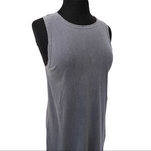 n: Philanthropy dark gray Lori crewneck tank dress. Front side twist hem. Keyhole opening in back. Relaxed fit. Intentional distressing. Gently used condition. Color variations-not sure if intentional or flawed. Gently used condition.