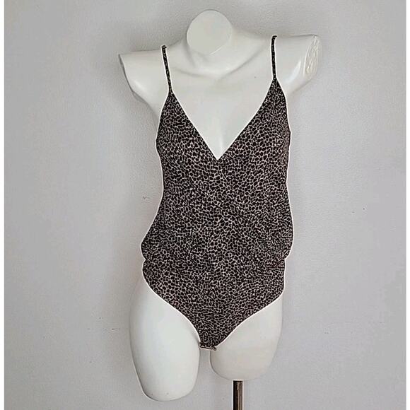 N:Philanthropy Peppermint Leopard Print Crossover Wrap Bodysuit XS Sugar Cheetah