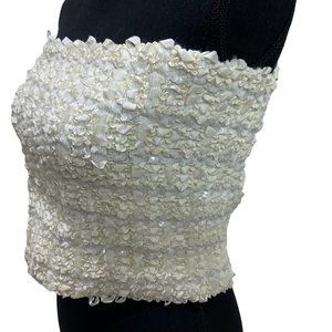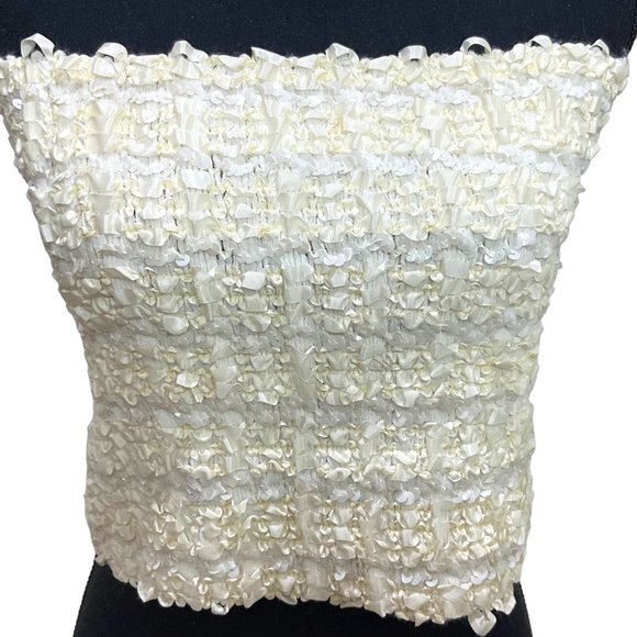 NR1 By Ned Gould Ivory Ribbon and Sequins Stretch Top Size 14 Cocktail Party