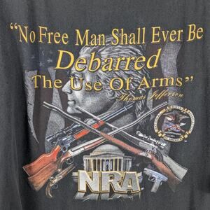 Front: small NRA logo; Back: Thomas Jefferson quote with rifle artwork