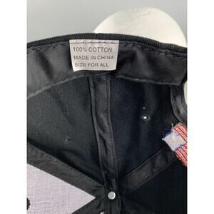 NRA BLACK 100%COTTON BASEBALL HAT WITH EMBROIDERED NRA ON THE FRONT AND AN AMERICAN FLAG PATCH ON THE BACK. HAT IS VECRO ADJUSTABLE