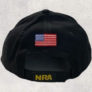 Black NRA Hat. NRA embroidered on the front with the USA Flag on the back.