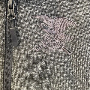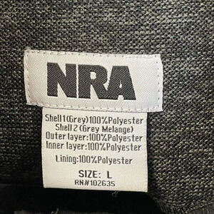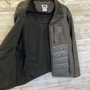 NRA Mens L Jacket Black Logo Puffer Knitted Combo Full Zip 3 Zippered Pockets