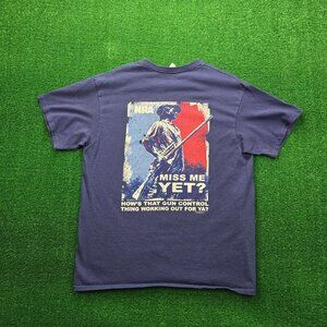 NRA Tshirt Mens Large Blue Short Sleeve Miss Me Yet Graphic Print
