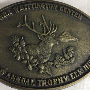 NRA Whittington Center Belt Buckle 3rd Annual Trophy Elk Hunt Buck Deer 3.5x2.5. Condition is Pre-owned.
