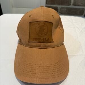 NRA-ILA Hat Cap Strap Back Tan Beige Leather Patch Mens