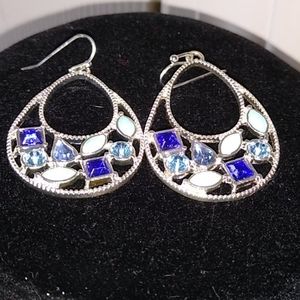 Gorgeous silver toned iridescent teardrop earrings~