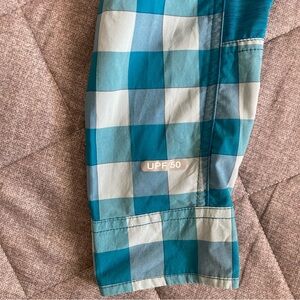 NRS Long Sleeve Guide Shirt Womens Medium Blue Gingham Pearl Snap Hiking UPF